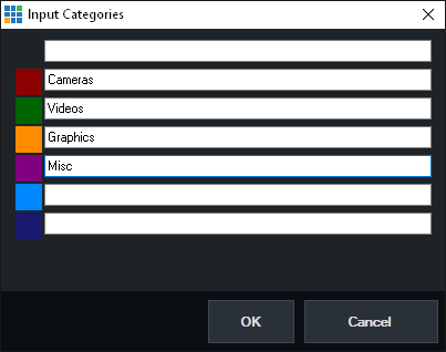 When an Input has been assigned to a particular category, the Input Settings button will be changed to a matching colour.