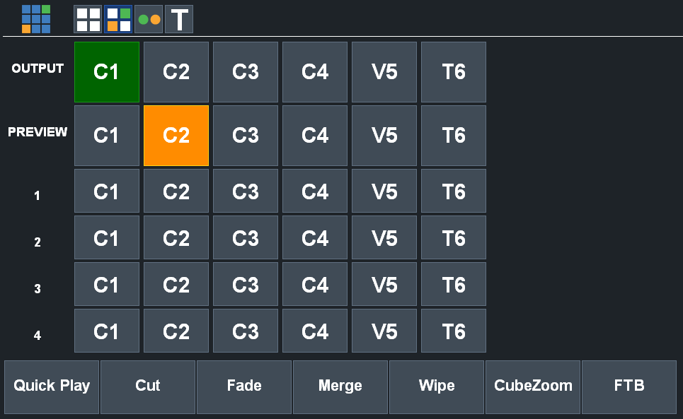 Click the Switcher button to display the web interface in a mode similar to the hardware controller available on a traditional video switcher.