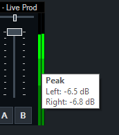 So see the maximum peak levels of an audio source at any time, hover the mouse over the audio meters.