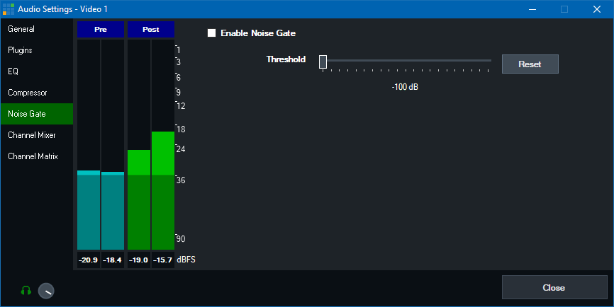 The Noise Gate is a handy way of reducing noise on an Audio Input such as a Microphone