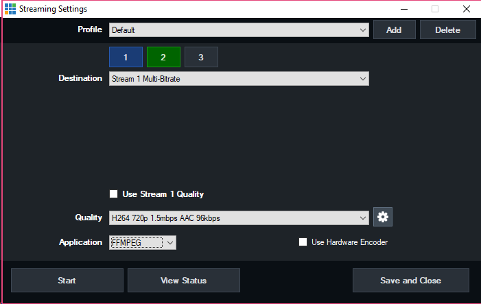 3. Configure up to two additional streams by selecting Stream 1 Multi-Bitrate as the Destination for stream 2 and optionally stream 3.