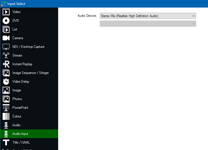 5. Finally, go to Add Input, Audio Input and select Stereo Mix and then click OK.