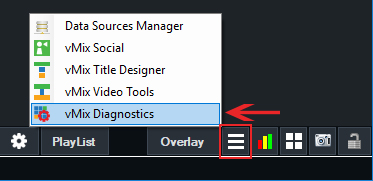 Select and open vMix Diagnostics from the vMix hamburger menu
