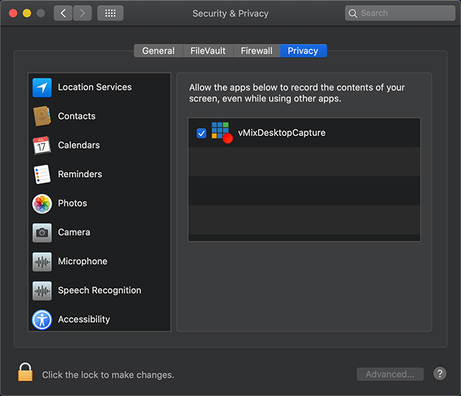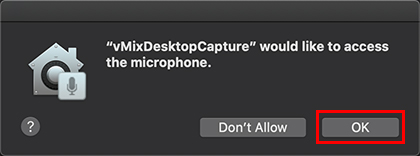 Allowing permissions for vMix Desktop Capture for Mac to access your Screen
