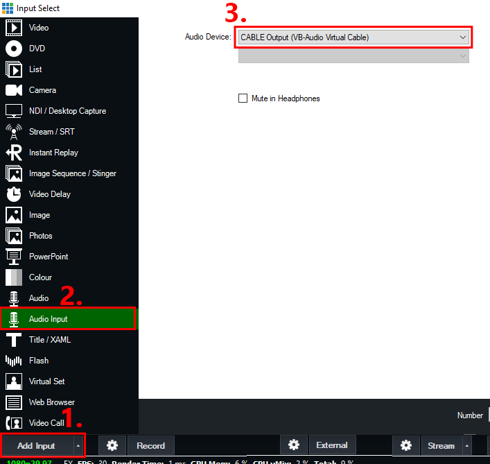 Firstly make sure that both the VB-Cable Virtual Audio Device and NDI Webcam Input programs are installed via the links provided above.