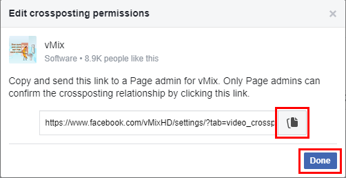 The other Page must confirm the crossposting relationship by adding your Page to its crossposting settings. To help the Page confirm the relationship, click the copy icon and send the confirmation link to an admin of the Page.