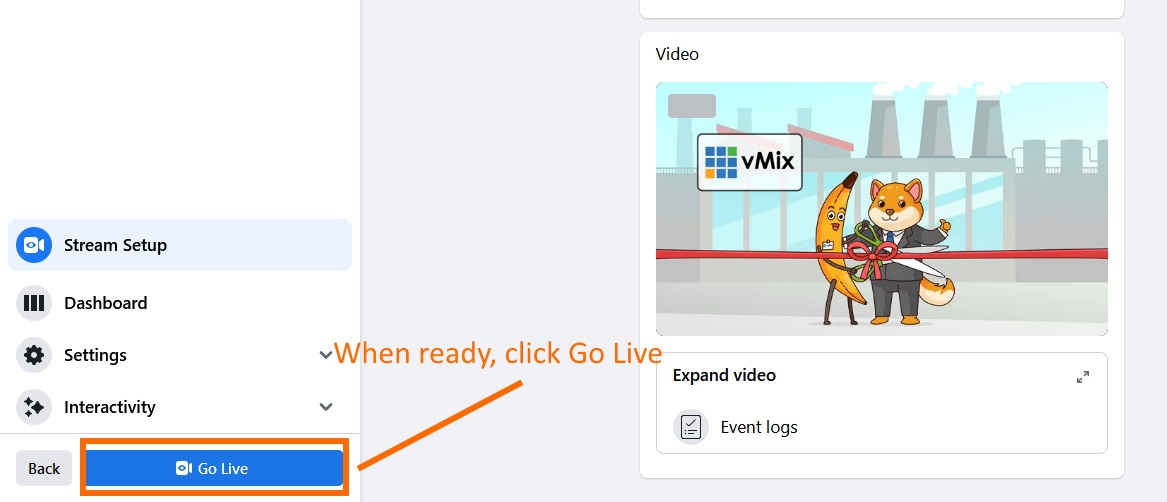 When you've finished your stream, turn it off in vMix and then stop it on Facebook immediately after.