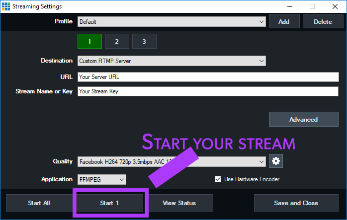 Streaming to Facebook Live manually using Custom RTMP Server