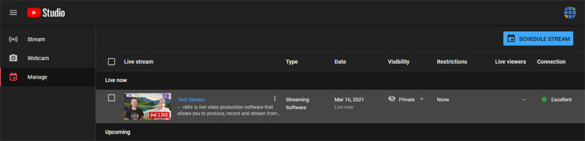 NOTE: Once you finish the stream in vMix, it will also automatically end in YouTube. No need to stop the stream in the YouTube Studio interface.