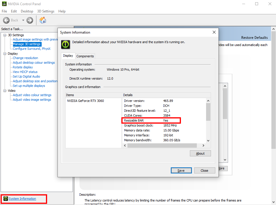 Step 3: Check if Resizable BAR Support is enabled and working