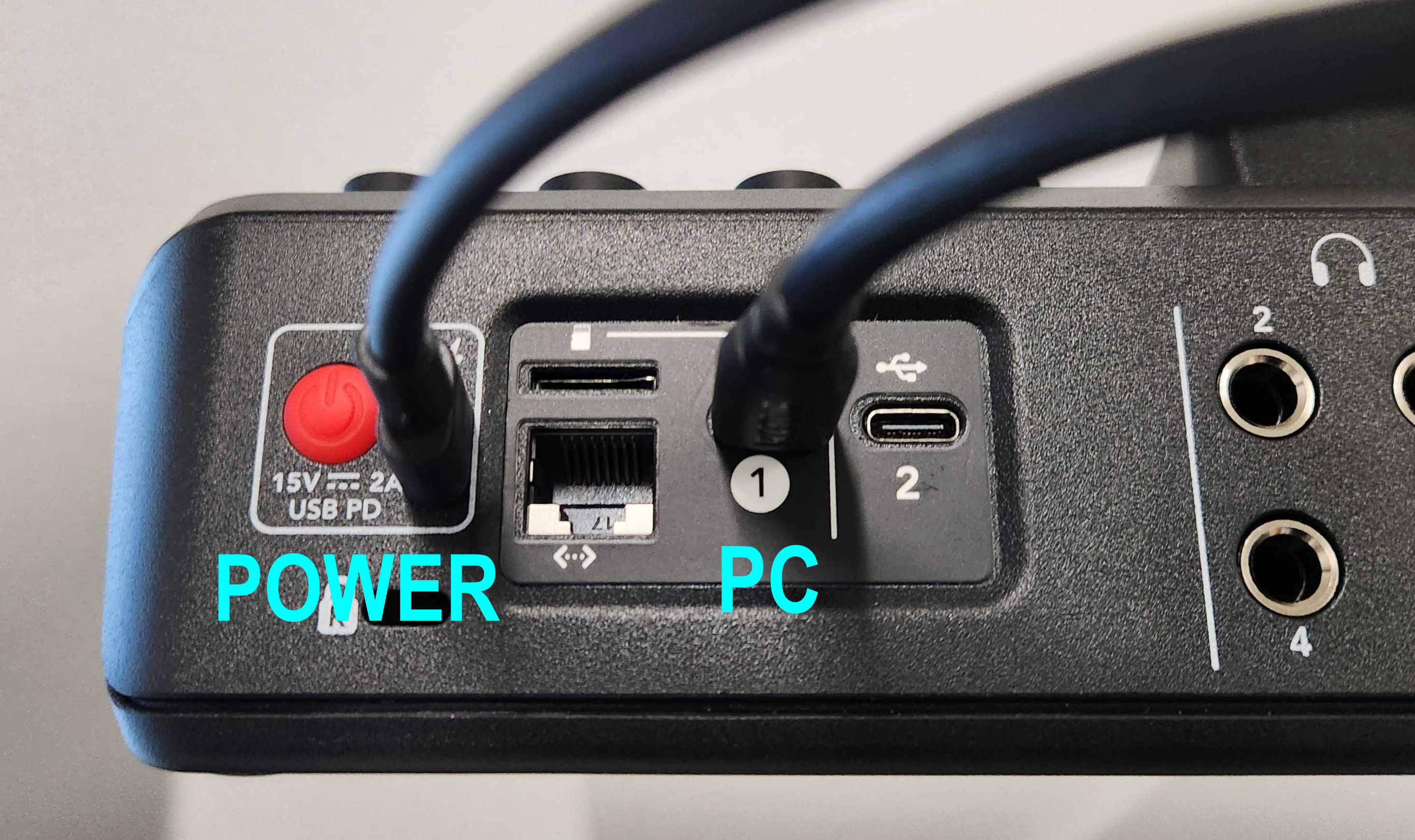 Step 2. Connect your RODECaster Pro II to power via the USB PD port and to your vMix PC via the USB 1 port using the cables provided with the device.